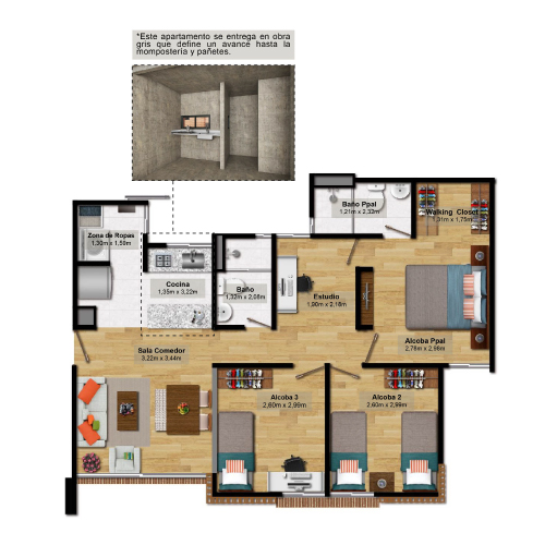 Área priv. desde